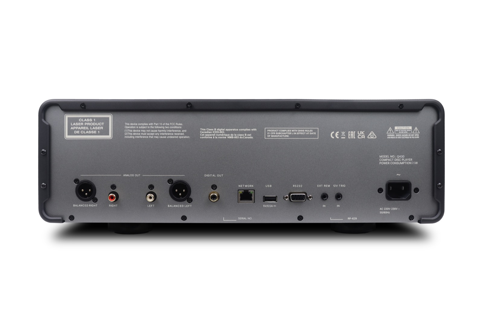 Der Michi Prestige Q430 CD-Player bietet vielseitige Anschlussmöglichkeiten für unterschiedliche Anlagenkonfigurationen. Neben einem unsymmetrischen RCA-Ausgang steht auch ein vollsymmetrischer XLR-Ausgang zur Verfügung, wodurch sich der Player optimal in hochwertige Stereo-Systeme integrieren lässt.