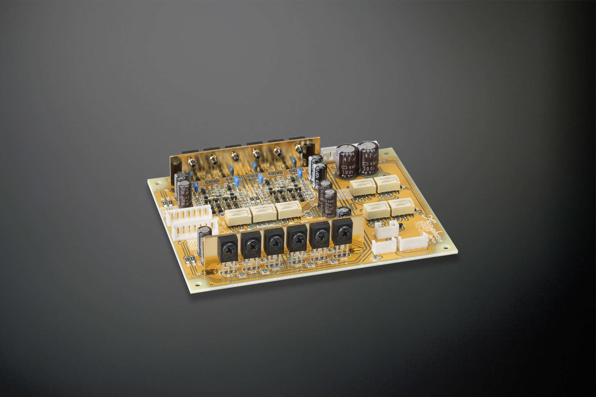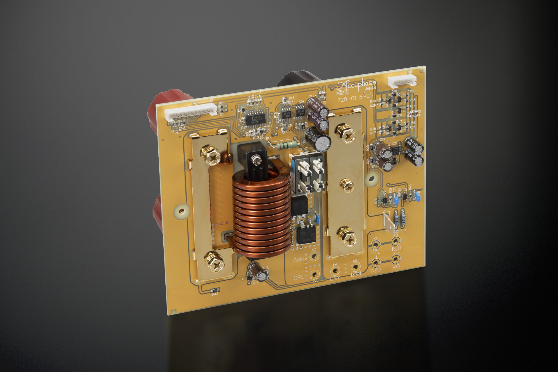 Alle Audiosignale werden über GFK-Platinen aus Fluorkarbonharz mit vergoldeten Leiterbahnen und Kontakten geführt. Diese Materialwahl minimiert Verluste und sorgt für maximale Langzeitstabilität.
