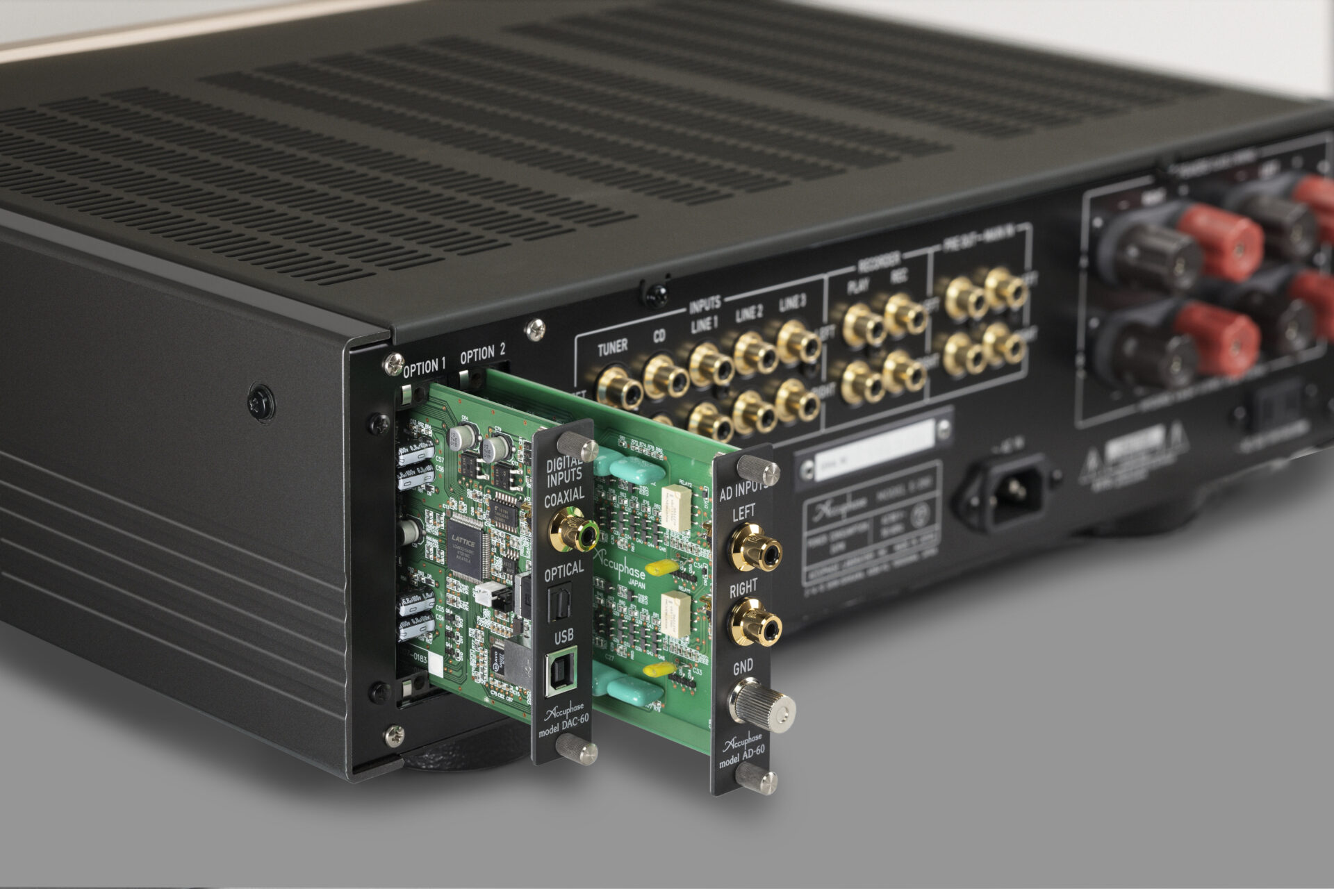 Als integraler Bestandteil des modularen Accuphase-Konzepts fügt sich das AD-60 nahtlos in kompatible Geräte von Accuphase ein. Die Installation erfolgt über einen dafür vorgesehenen Optionsschacht, wodurch kurze Signalwege, optimale Abschirmung und eine perfekte Integration in die bestehende Elektronik gewährleistet sind.
