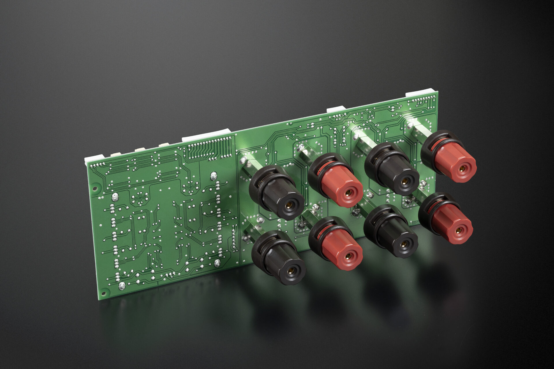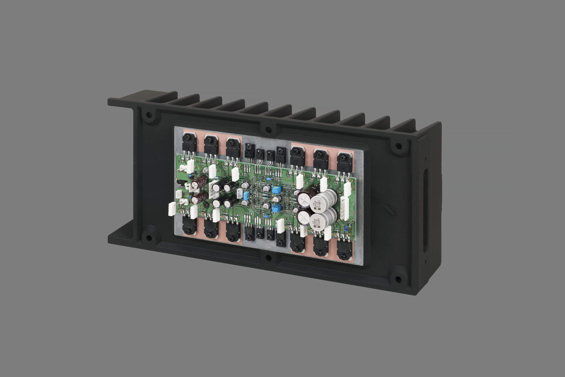 Die Endstufenplatinen sind direkt an den großzügig dimensionierten Kühlkörpern montiert. Diese Bauweise sorgt für eine effiziente Wärmeableitung und trägt entscheidend zur hohen Betriebssicherheit und Langlebigkeit der Class A/B Endstufe bei – selbst bei dauerhafter hoher Leistungsabgabe.