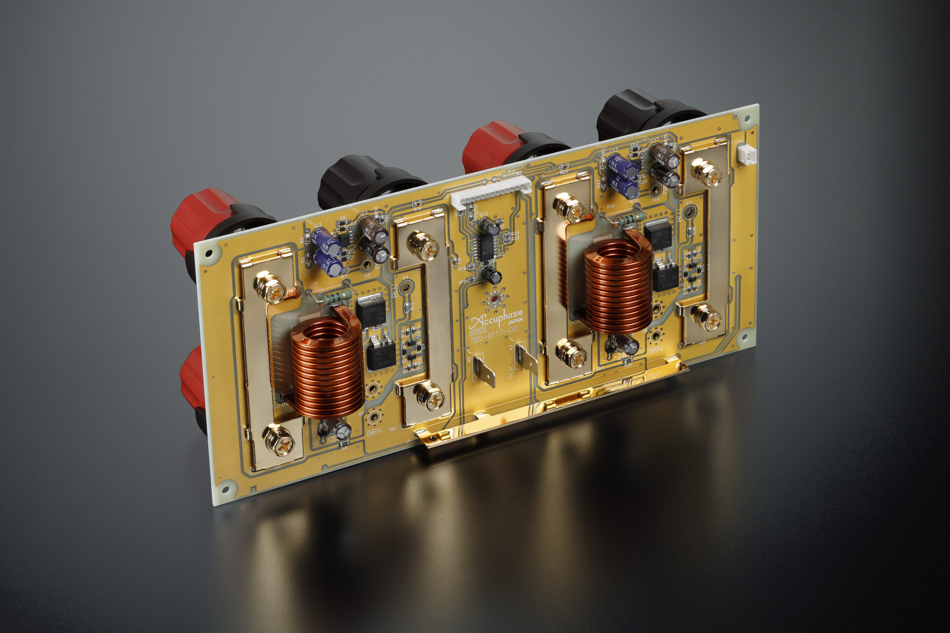 Herzstück der Accuphase P-7500 sind die vollständig neu entwickelten Endstufenmodule. Jeder Kanal ist mit zehn High-Output-Bipolartransistoren ausgestattet, die eine enorme Stromlieferfähigkeit gewährleisten. Sämtliche Verstärkerstufen sind diskret aufgebaut und mit ultra-rauscharmen, selektierten Bauteilen bestückt.
