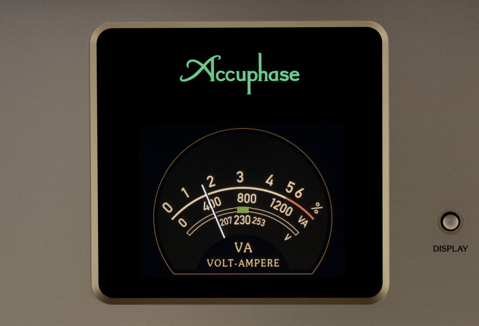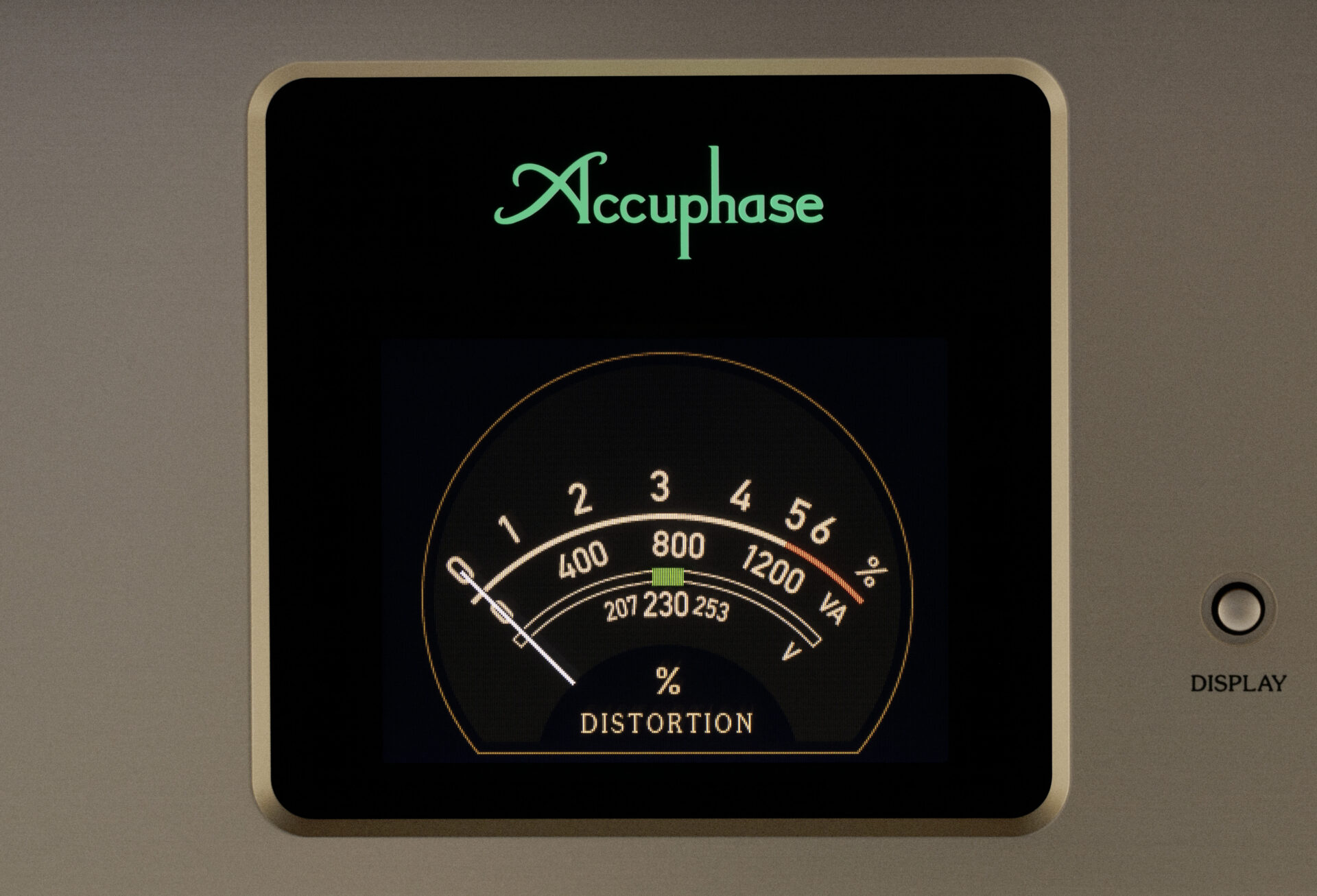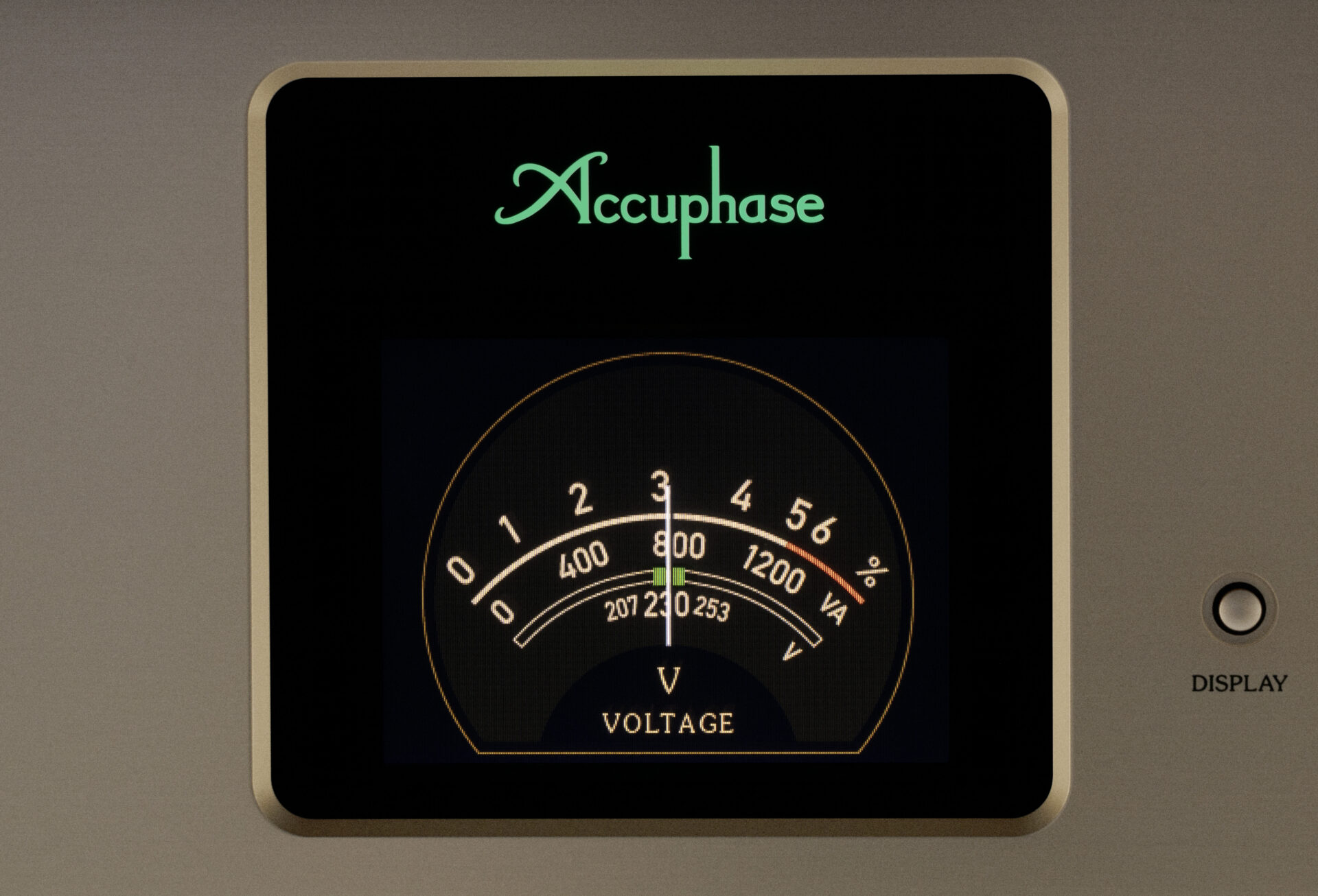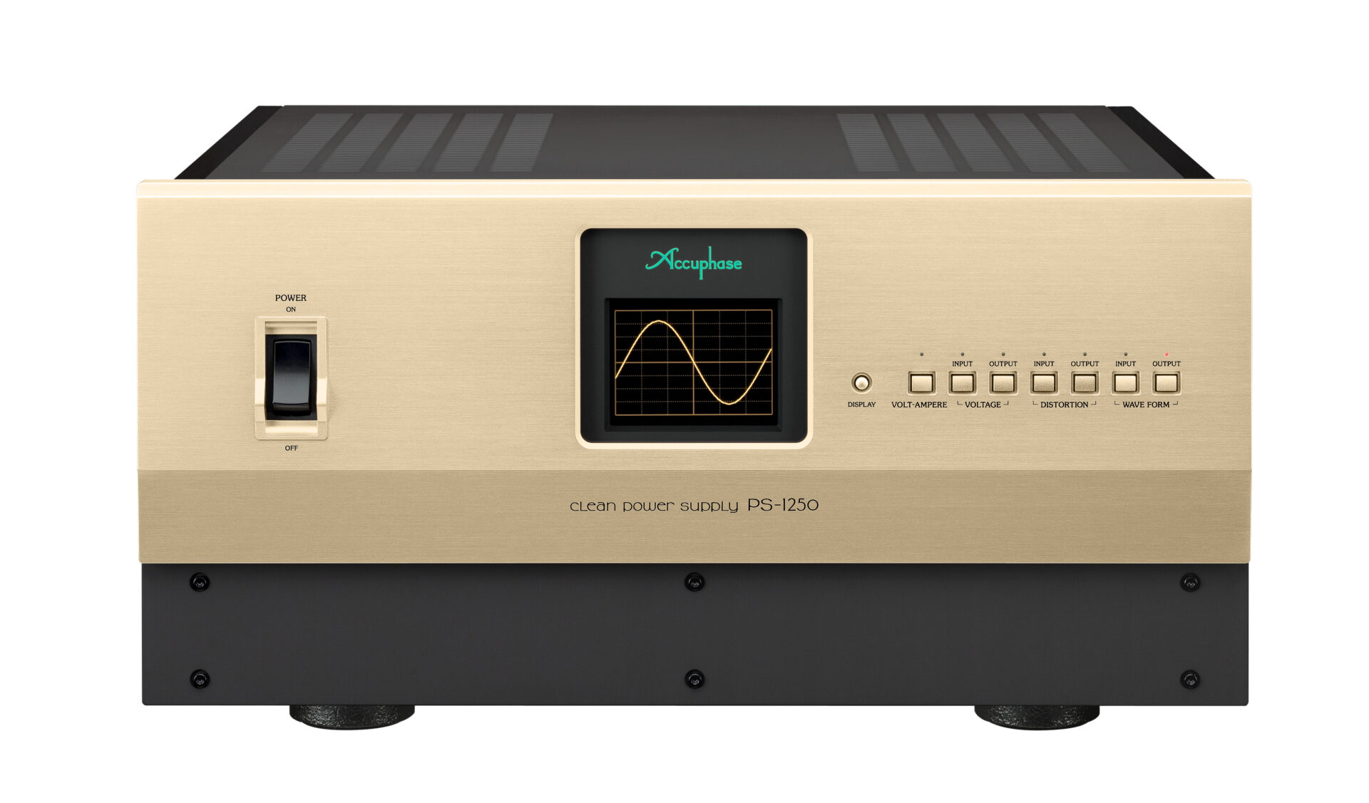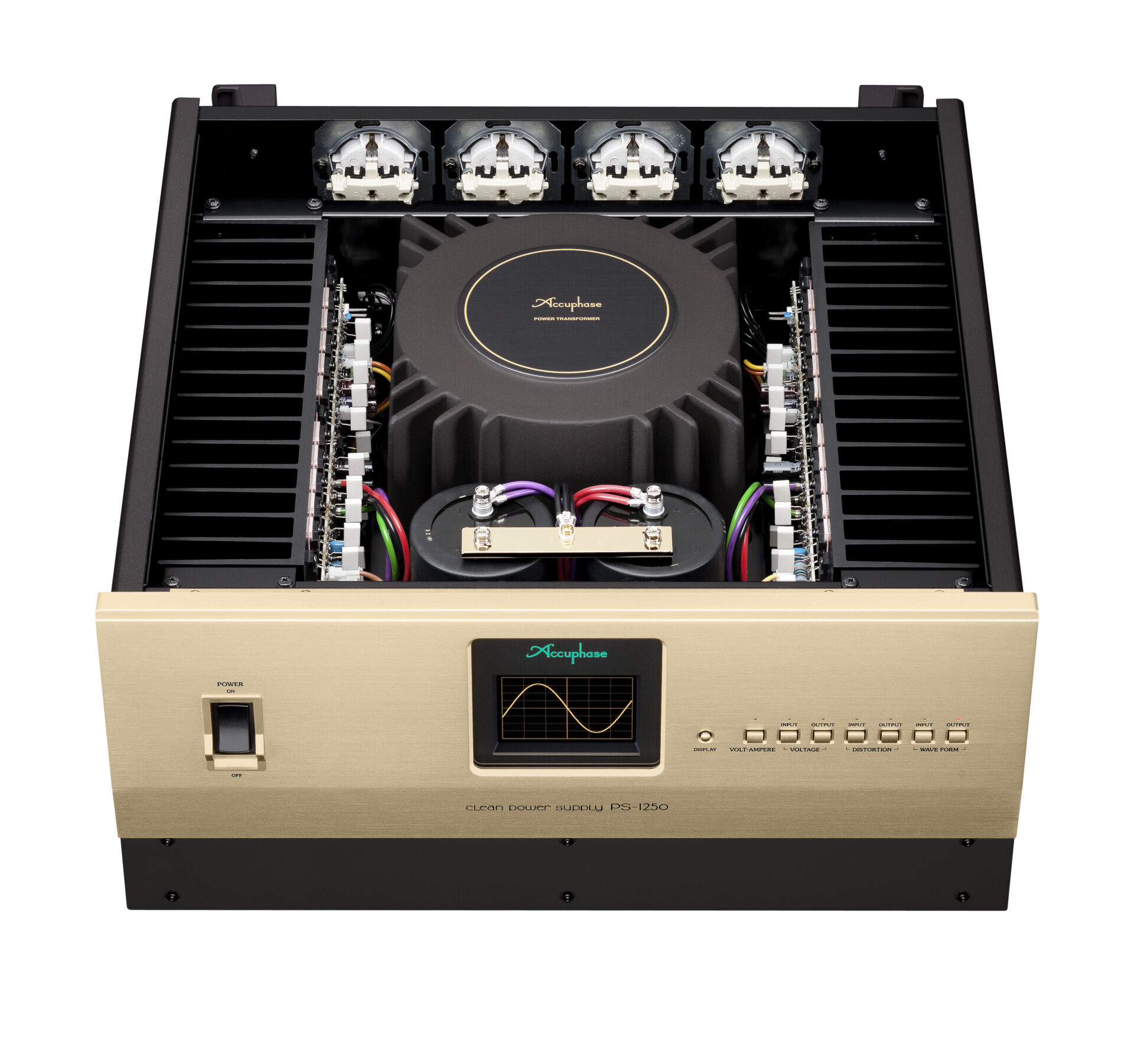 Ein besonderes Merkmal des Accuphase PS-1250 ist seine vierfach umschaltbare Anzeige, über die sich die Resultate des Waveform Shaping anschaulich darstellen lassen. Die Anzeige vermittelt einen direkten Eindruck von der Qualität der Eingangsspannung und der erzeugten Ausgangswellenform.