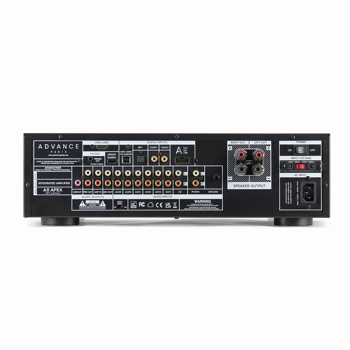 Zum 30-jährigen Jubiläum präsentiert Advance Paris eine besondere Sonderedition des A8 APEX. Die 30TH Edition erscheint in elegantem Schwarz und überzeugt durch eine veredelte Optik und eine besonders hochwertige Haptik. Diese Edition macht den Vollverstärker zu einem optischen Highlight in jeder HiFi-Anlage und spricht Sammler sowie Designliebhaber gleichermaßen an.