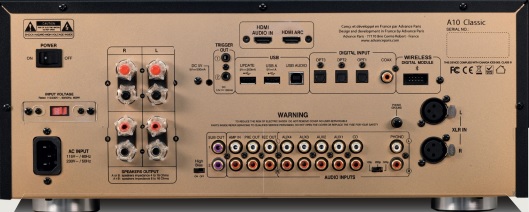 Eine Auto Standby-Funktion, hochwertig vergoldete und gekapselte Lautsprecher-Terminals sowie zwei Subwoofer-Ausgänge bzw. Pre-Outs runden die Ausstattung und flexible Anschluss Sektion des A10 Classic ab.