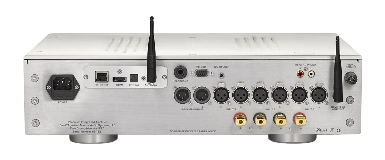 Der Pendulum Vollverstärker kann optional mit einer umfassenden Palette digitaler Anschlüsse ausgestattet werden und gewährleistet so eine nahtlose Integration mit modernen Audioquellen und -systemen. Mit optischen Anschlüssen sowie RJ45- und WLAN-Netzwerkanschlüssen bietet er einzigartige Anschlussmöglichkeiten. Als erste D’Agostino-Komponente verfügt er über einen HDMI-Eingang mit eARC-Funktionalität, was die Integration in Home-Entertainment-Systeme vereinfacht.