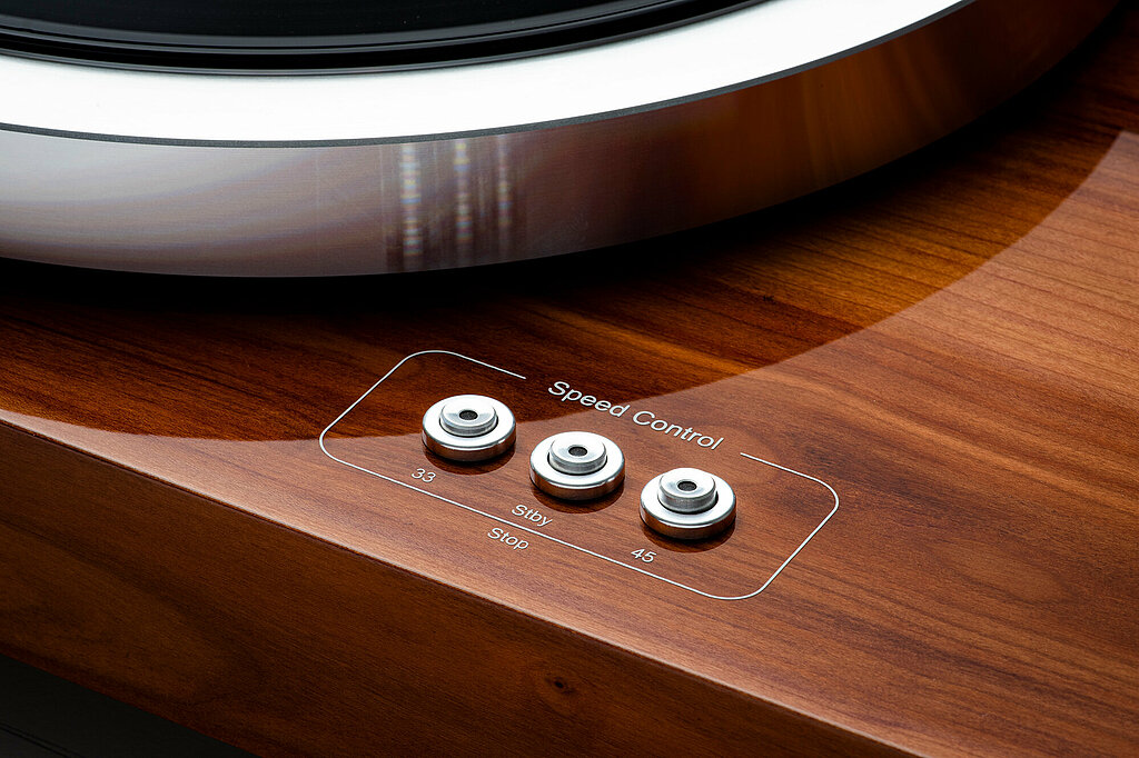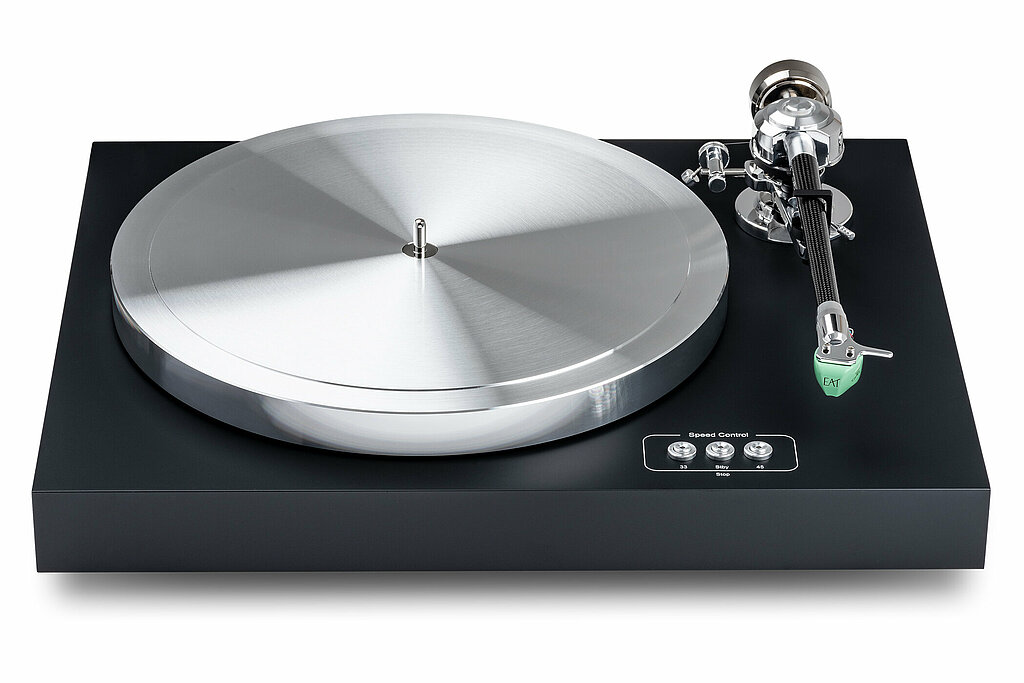Der extrem geräuscharme Motor des neuen E.A.T. C-Dur ist isoliert und in einem Stahlring untergebracht, der dann in das Chassis eingebaut wird. Ein externes Gleichstromnetzteil mit einem Wechselstromgenerator sorgt für eine absolut saubere Stromversorgung des Motors. Ein spezieller antistatischer, polierter Gummiriemen verbindet den Motor mit dem Aluminium-Subteller. Mit dem elektronischen Geschwindigkeitsregler auf dem Plattenteller können Sie die Geschwindigkeit ganz einfach ändern. Legen Sie eine Schallplatte auf den Plattenteller und stellen Sie die richtige Geschwindigkeit mit einem Tastendruck ein.