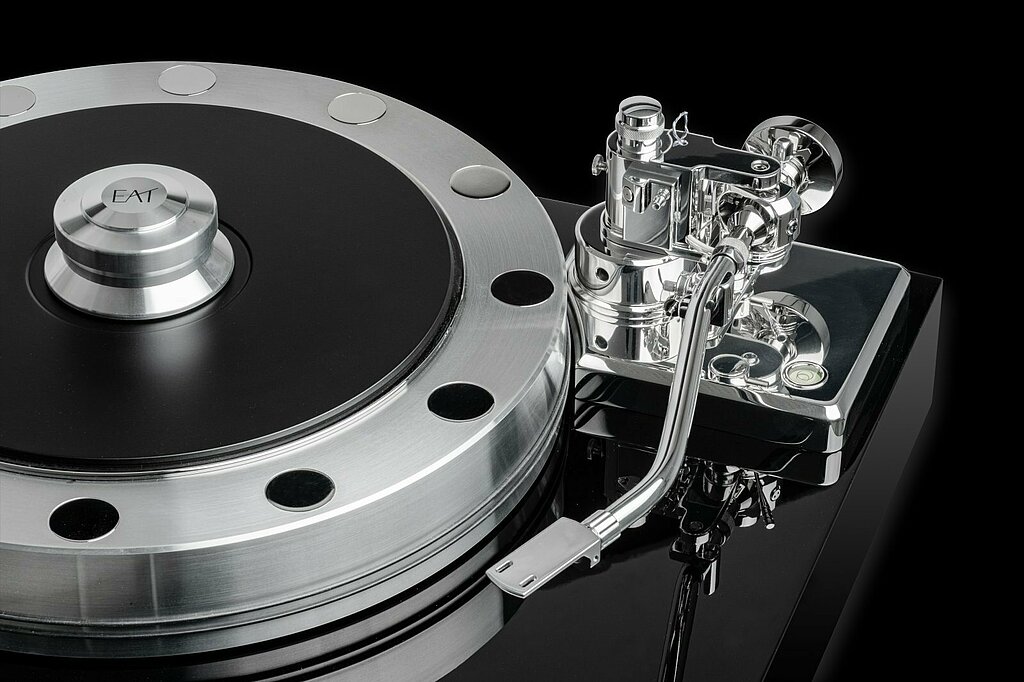 Ein Tonarm, der das höchste Niveau in der analogen Wiedergabe erreicht. Der E.A.T. F-Note Tonarm hat eine kardanische Konstruktion mit vier extrem reibungsarmen Pinpoint-Lagern. Die Topversion des Tonarms verfügt über einen superharten Diamantspiegel für die Lager. Die exakte, werkzeuglose Einstellung von VTA (Vertical Tracking Angle), VTF (Vertical Tracking Force) und Azimut für jeden Tonabnehmer erfüllt die Ansprüche der anspruchsvollsten Hörer. Die Präzision der Einstellungen wird durch eine Laserdiode perfektioniert, die genaue Einstellungen anzeigt.