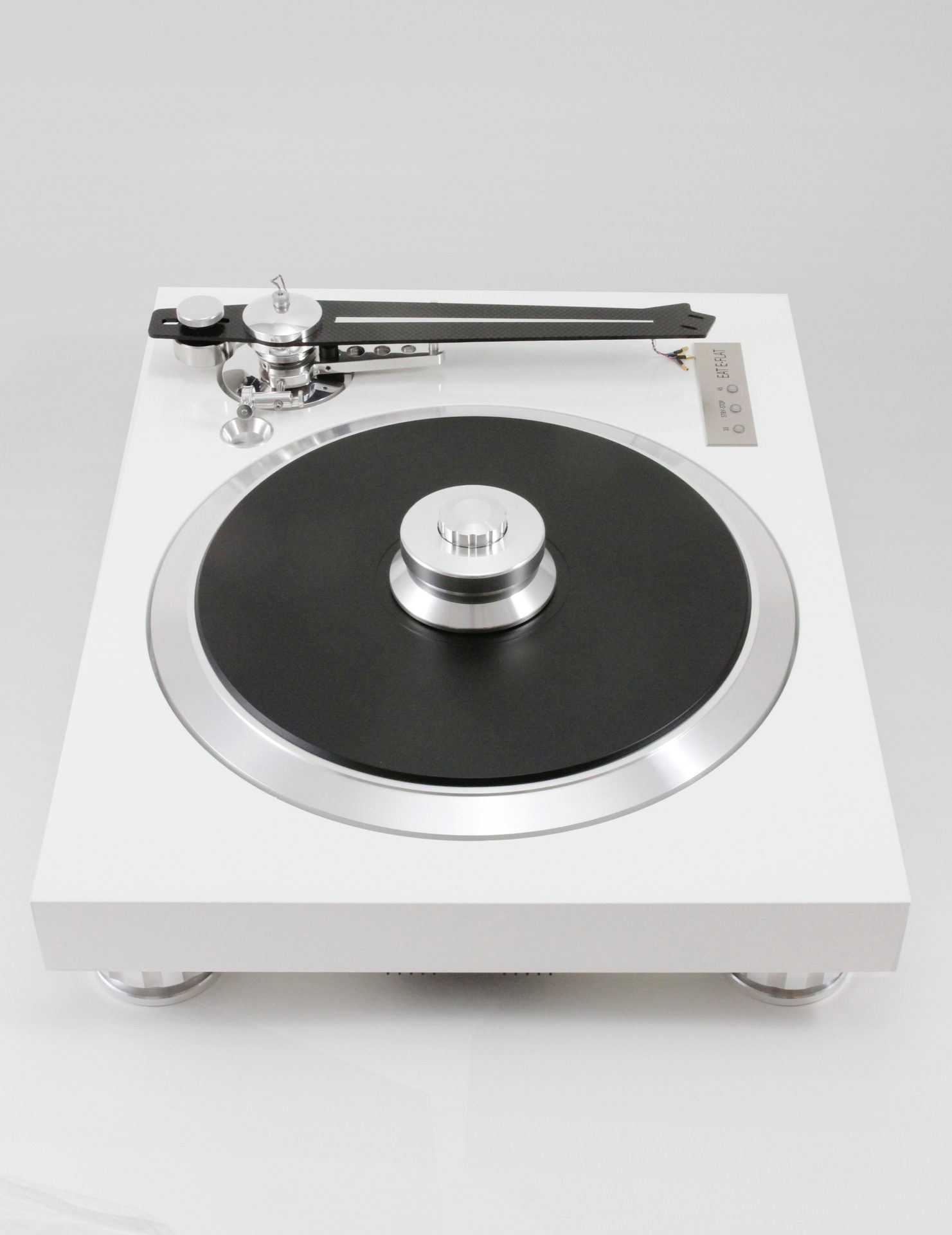 EAT’s E-Flat ist ein neuer, zukunftsorientierter Plattenspieler, ausgerüstet mit einem revolutionären flachen Tonarm. Obwohl flache Tonarme bereits in der Vergangenheit beobachtet werden konnten, war keiner davon imstande, die für die Erbringung einer stabilen Leistung, wie sie heute von modernen Tonarmen erwartet wird, notwendige Steifigkeit zu bieten. Dank der fortwährenden Weiterentwicklung von Kohlefasern hat es Forte geschafft, einen Tonarm mit den praktischen und ästethischen Vorteilen einer flachen Form, aber ohne deren Nachteile, zu entwickeln.