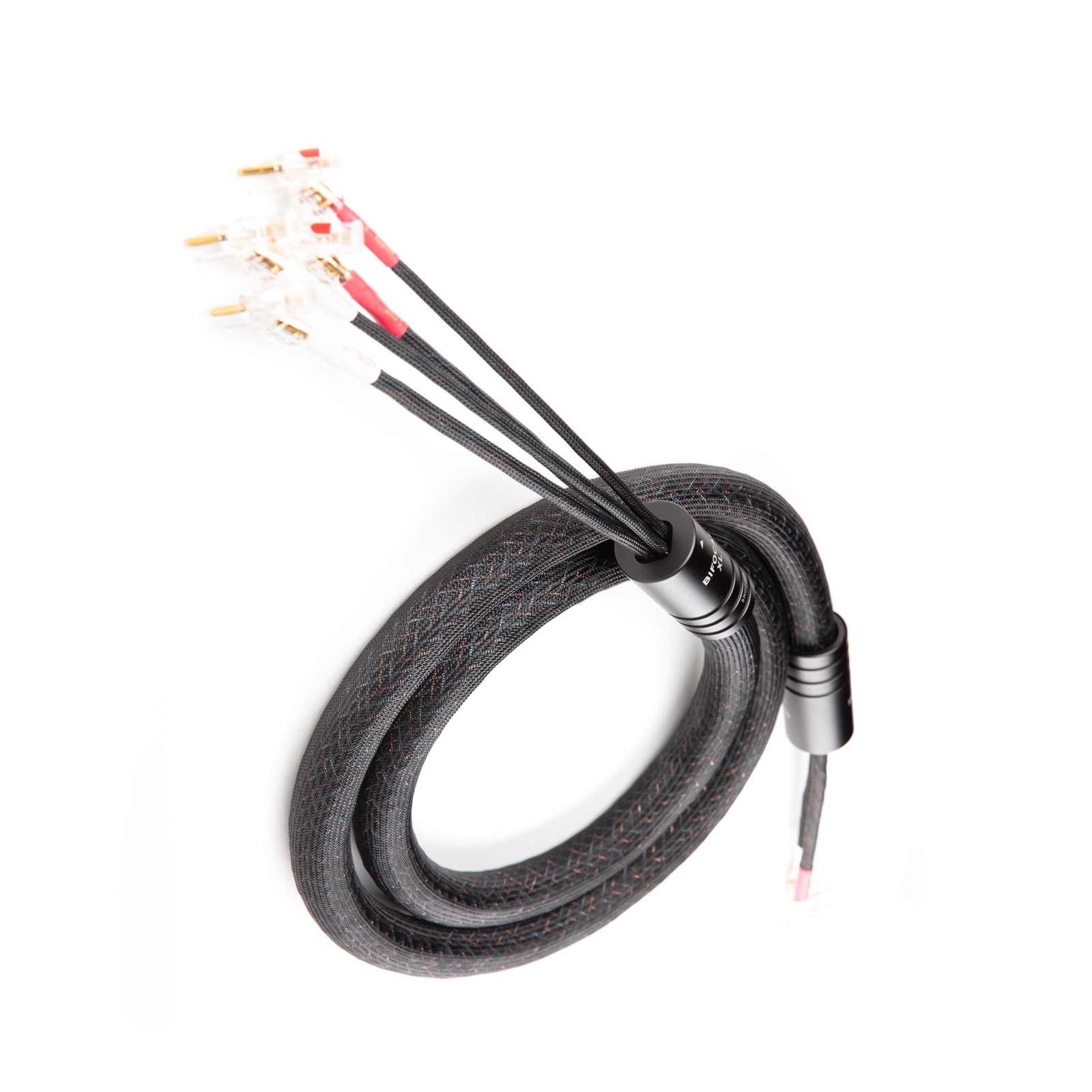 Das Kimber Kable Bifocal XL baut auf der BIFOCAL X-Plattform auf, indem die Kupfermasse auf jeder Schicht erhöht wird. Ein zwölfadriges Geflecht um den X38R-Kern, gefolgt von einer Lage geflochtenem ESD-Garn, um die Hochfrequenzleiter von dem vierundzwanzigadrigen Geflecht zu trennen, aus dem die Niederfrequenzleiter bestehen. Nach drei Durchläufen durch die Flechtmaschine liegen zwei völlig unterschiedliche Kabel in einem einzigen Kabelstrang vor. Ein echtes Biwire- oder Biamp-Kabel in einem schlanken Paket. Es besteht zu gleichen Teilen aus TC- und VS-Leitern. Das Beste aus beiden Eigenschaften, TC und VS, mit einer deutlich besser definierten Klangbühne und einer präziseren Abbildung. Eine hervorragende Lösung für längere Strecken oder anspruchsvollere Lasten.