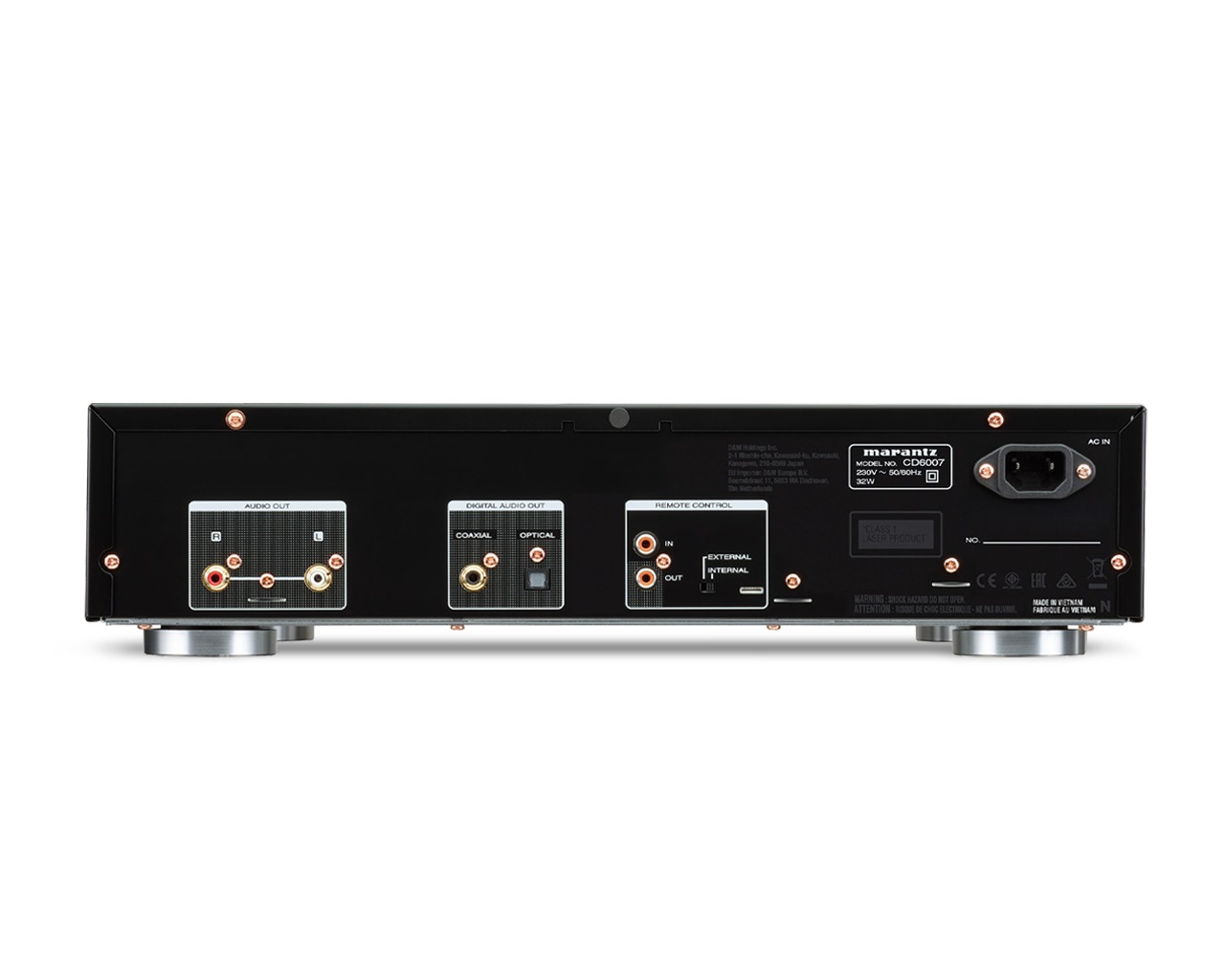 Als Weiterentwicklung des preisgekrönten CD6006 bietet der fein abgestimmte CD-Player CD6007 noch sorgfältiger ausgewählte Bauteile sowie ein verbessertes Schaltungs-Layout. Die starren Füße verringern Vibrationen, während das großzügig dimensionierte rauscharme Netzteil die digitalen und analogen Schaltkreise des Players versorgt. Der neue, hochwertige D/A-Wandler AK4490 sorgt mit zwei wählbaren Digitalfiltern für eine hochpräzise Wandlung von digitalen in analoge Signale. Diese werden über die von Marantz selbst entwickelten diskreten Operationsverstärker HDAM-SA2 an die vergoldeten Ausgänge geleitet. Mit der mitgelieferten neuen Fernbedienung lässt sich auch der passende Verstärker PM6007 steuern. Der CD6007 verfügt über einen neu entwickelten, ausgereiften Kopfhörerverstärker mit Impedanzregelung, die den Einsatz unterschiedlicher Arten von Kopfhörern ermöglicht.