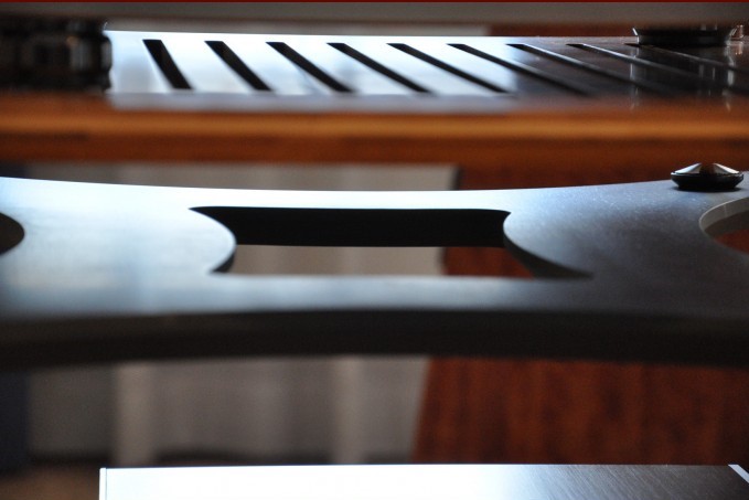 Das Flaggschiff-Rack von Quadraspire mit dem Namen X Reference ist das Ergebnis kontinuierlicher Weiterentwicklung und wäre ohne die Verwendung von mehrlagigen massiven Bambusebenen nicht denkbar. Alester Kells hatte herausgehört, dass eine SVT-Ebene nur dann große klangliche Vorteile bringt, wenn die Luft darunter gut zirkulieren kann. Eine Ebene, die hingegen nur eine Handbreit über einer geschlossenen Fläche steht, funktioniert nicht wie gewünscht.