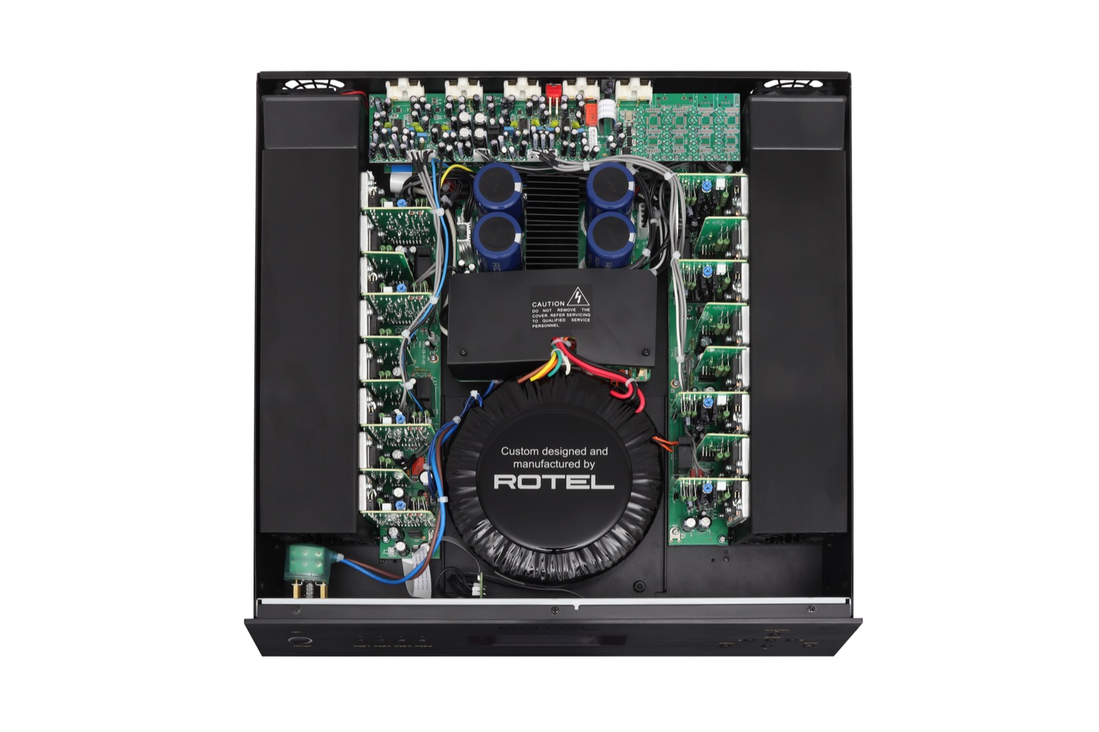 Im Inneren der Rotel C8 AV-Endstufe arbeiten acht einzeln aufgebaute Class-AB-Verstärkerkanäle. Jeder Kanal liefert 70 Watt an 4 Ohm und eignet sich ideal für kompakte bis mittelgroße Lautsprecher in Mehrzonen-Systemen.