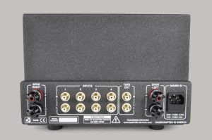 Die Lautstärkeregelung erfolgt dabei mit einem hochwertigen Alps-Motorpoti. Relais schalten die Eingänge direkt an den Eingangsbuchsen um. Zusätzlich ist eine Muting-Funktion vorhanden und eine automatische Einschaltprozedur mit Stummschaltung für 60 Sekunden hält Geräusche vom Lautsprecher fern.